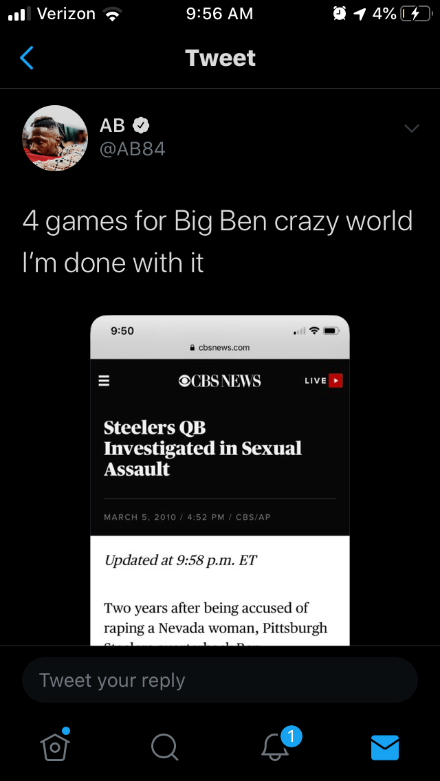No matter how wrong he is about his own position: Antonio Brown is very right in the position of others. Just touching on Big Ben, the guy never served enough time: If he ever deserved to play again at all. Meanwhile I’m here just watching AB spill the tea on the rest🐸☕️