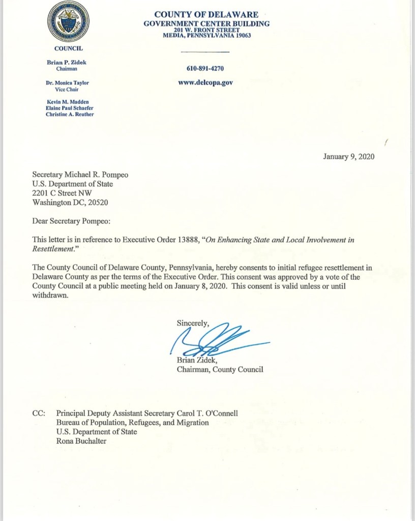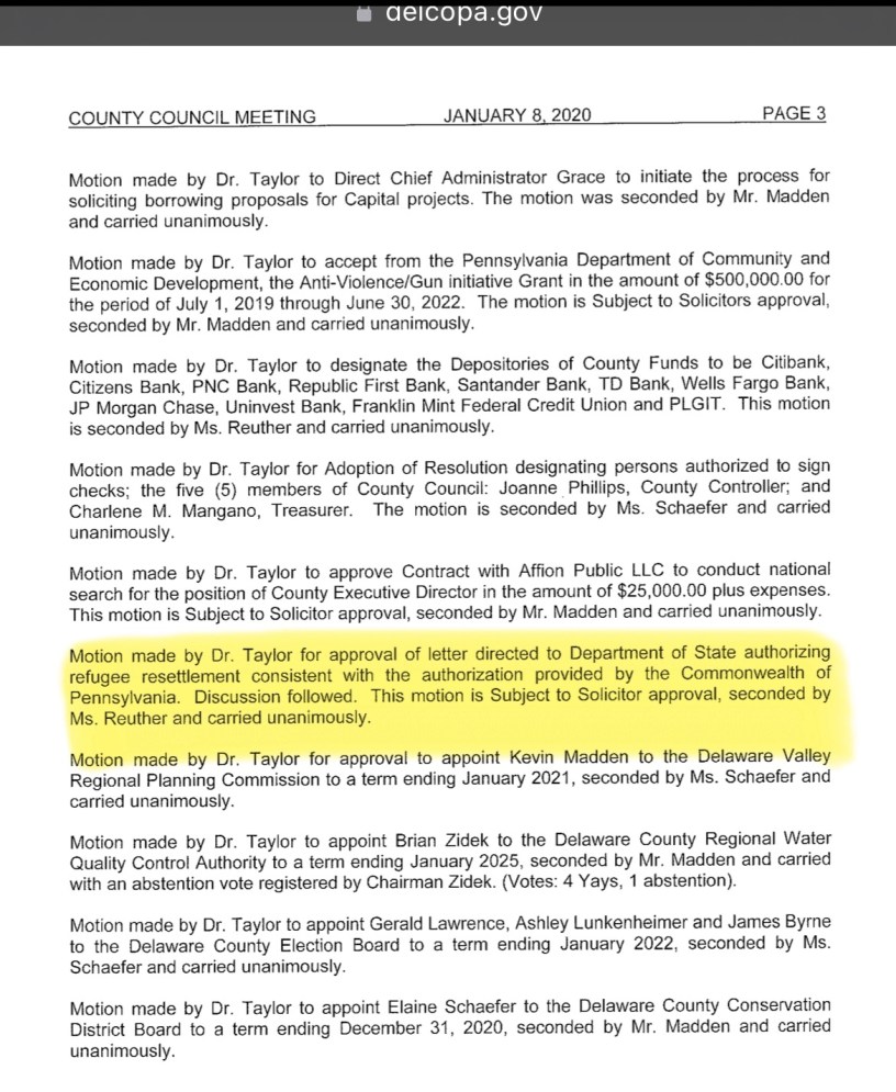 For those who do not know, this is why we want them to step down: Their directive to bring and settle Illegal Immigrants in Delaware County and to use the Don Guanella Buildings for that or an alleged Mental Health Center